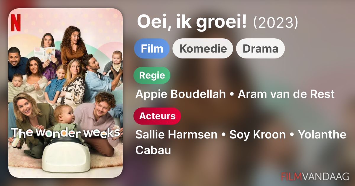 Film: Oei, Ik Groei! (2023) | Beeld: Max Maloney via Netflix. Fans van Nederlandse films, opgelet! Nieuwe romcom 'Oei, Ik Groei!' is nu te zien. Door. Jessica Dijkhof. -. 9 juni 2023. Netflix trakteert ons weer op een gloednieuwe romcom van eigen bodem. Vanaf vandaag kun je bij de streamingdienst naar Oei, Ik Groei! kijken.