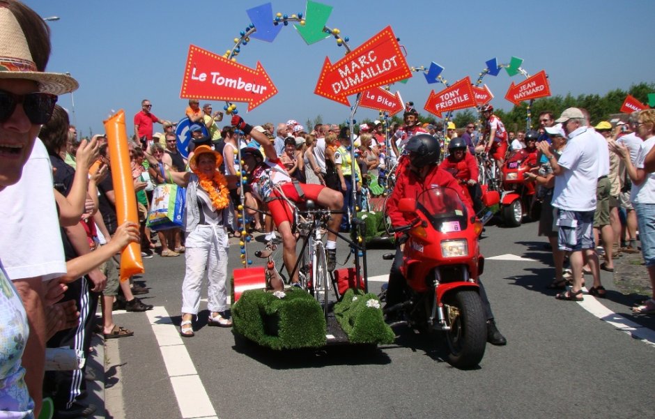 Dolle boel in de reclamekaravaan van de Tour de France! Foto